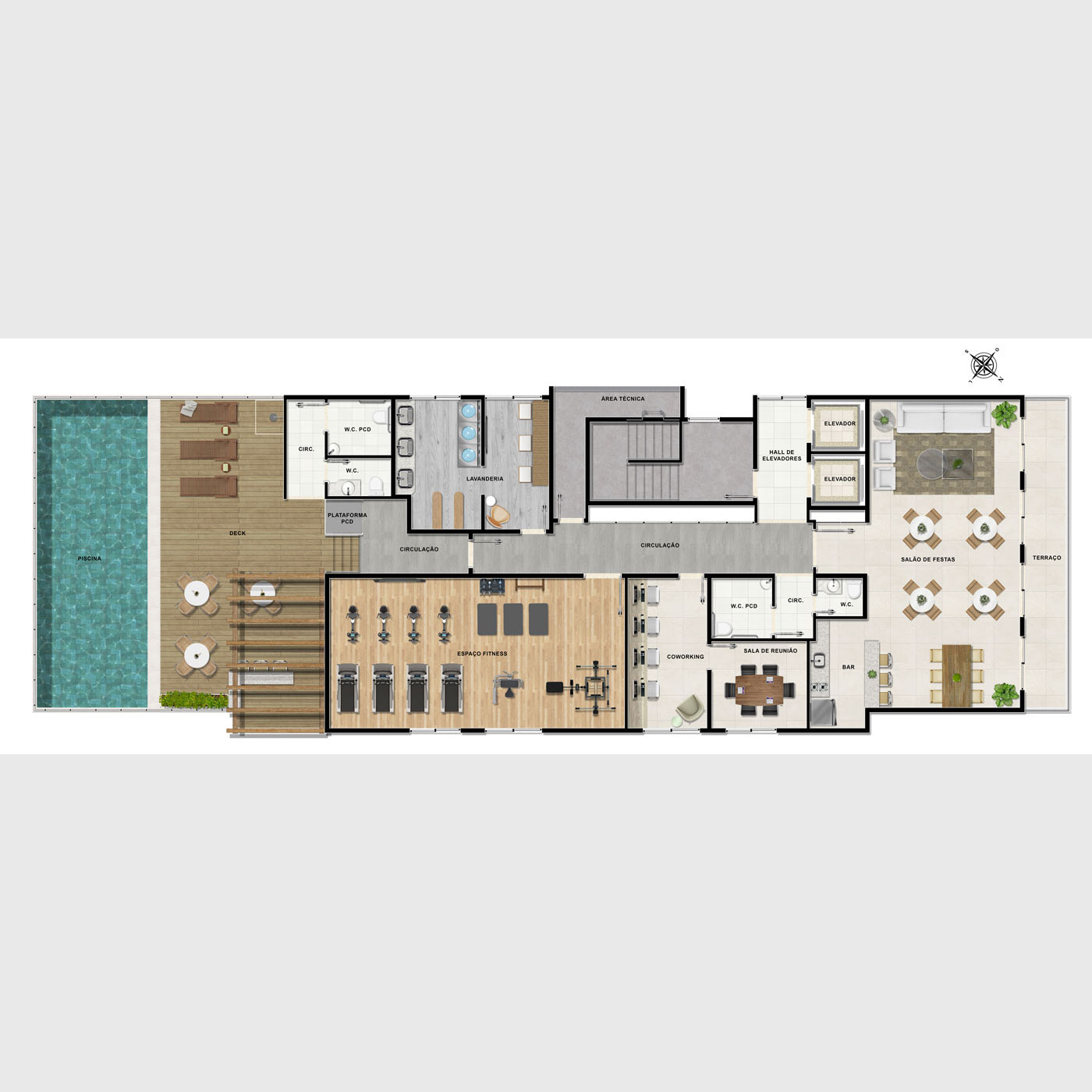 Piscina com deck e bar
